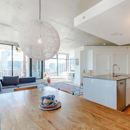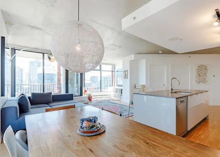 Die 2-Zimmer-Cool, Classy & Chic Downtown Suite Vancouver befindet sich im Stadtviertel Gastown, ca. 5 Fahrminuten von der U-Bahn-Station Stadium-Chinatown entfernt. Dieses 111 m^2 große Apartment bietet Ausblicke aufs Meer.